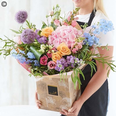 Each and every design is one-of-a-kind, created by an artisan florist using the freshest stems available on the day so, whilst your gift will look different from the one pictured, it’ll still be just as lovely.